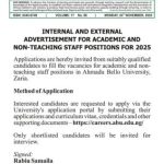 The Directorate of Media & Publicity, Office of the President of the Ahmadu Bello University Students’ Representative Council (ABUSRC), has issued a press release requesting specific students to submit their…