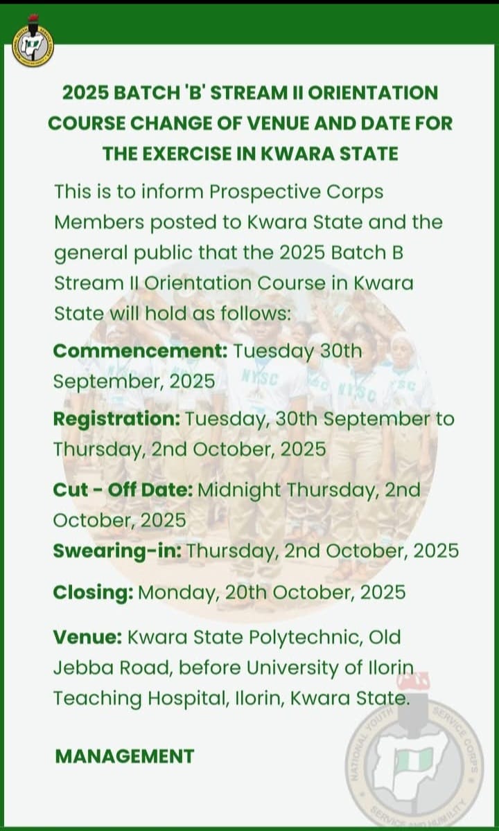 Kindly Read this and inform those you know that was deployed to Kwara State for their orientation camp Post navigation Nwafor Orizu COE notice on first semester resumption, 2025/2026 YABATECH second semester resumption date