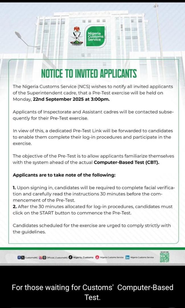 NIGERIA CUSTOM SERVICE RELEASE TEST DATE